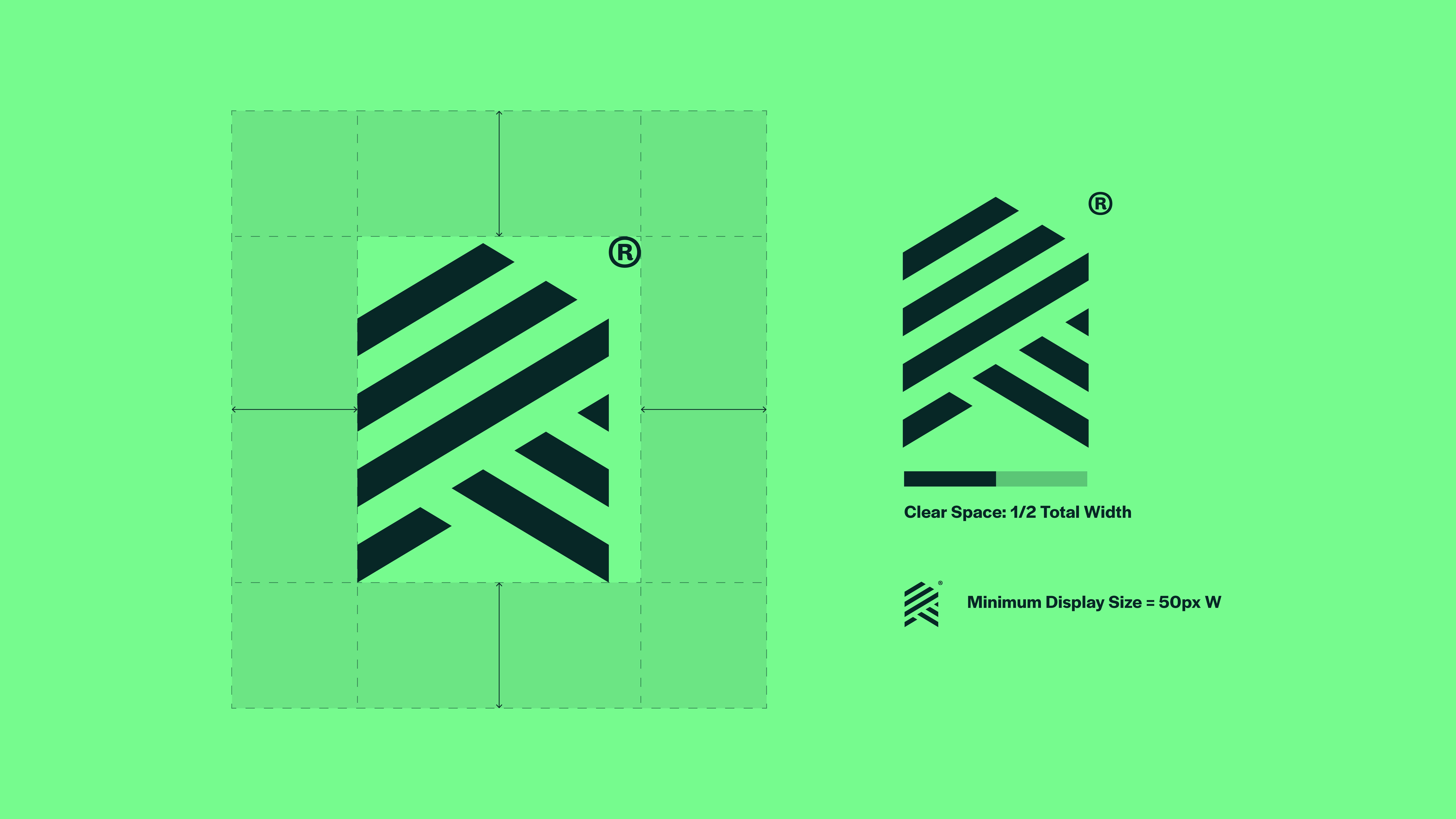 The minimum clear space around the icon device is equal to one half of the logo’s total width. This rule helps keep spacing consistent as the logo is resized and prevents other elements from appearing too close.